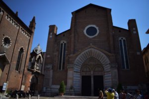 A Ponte Pietra híd előtt balra fordulunk, a veronai katedrális előtt egy angyallal fotózkodunk.