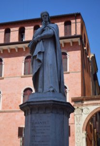 A Piazza dei Signori közepén Dante szobrával ismerkedünk, körülötte gyönyörű reneszánsz házak és a híres Torre dei Lamberti épülete. Szűk sikátoron át jutunk a régi városközpontba.